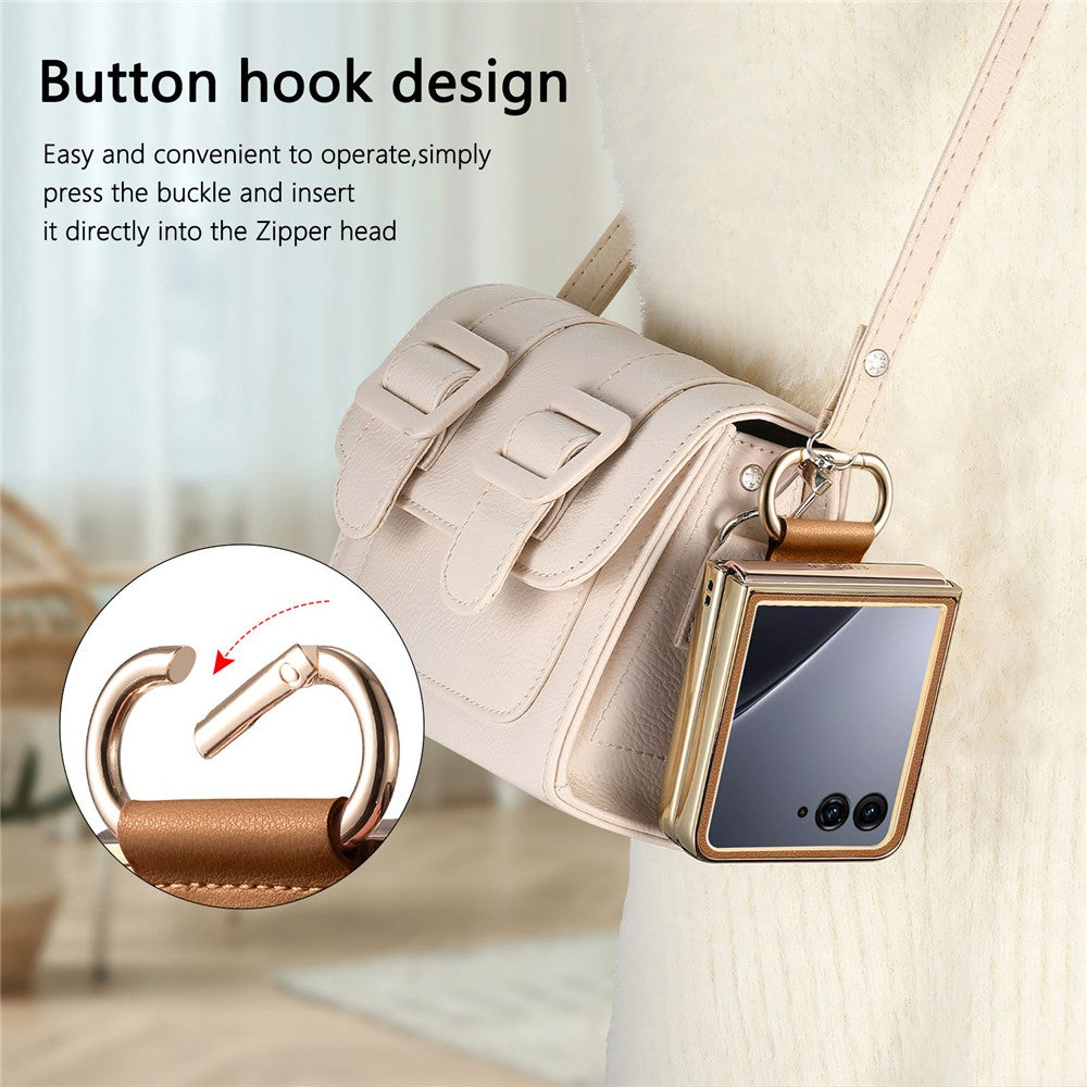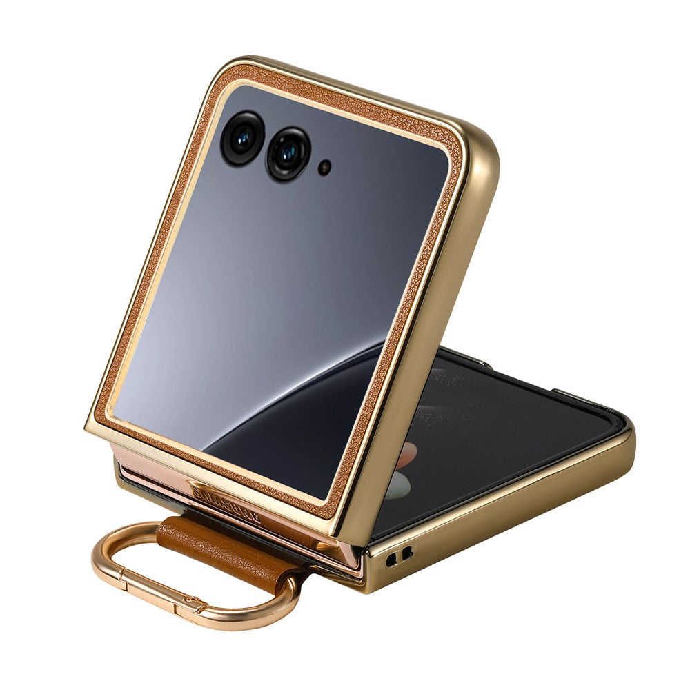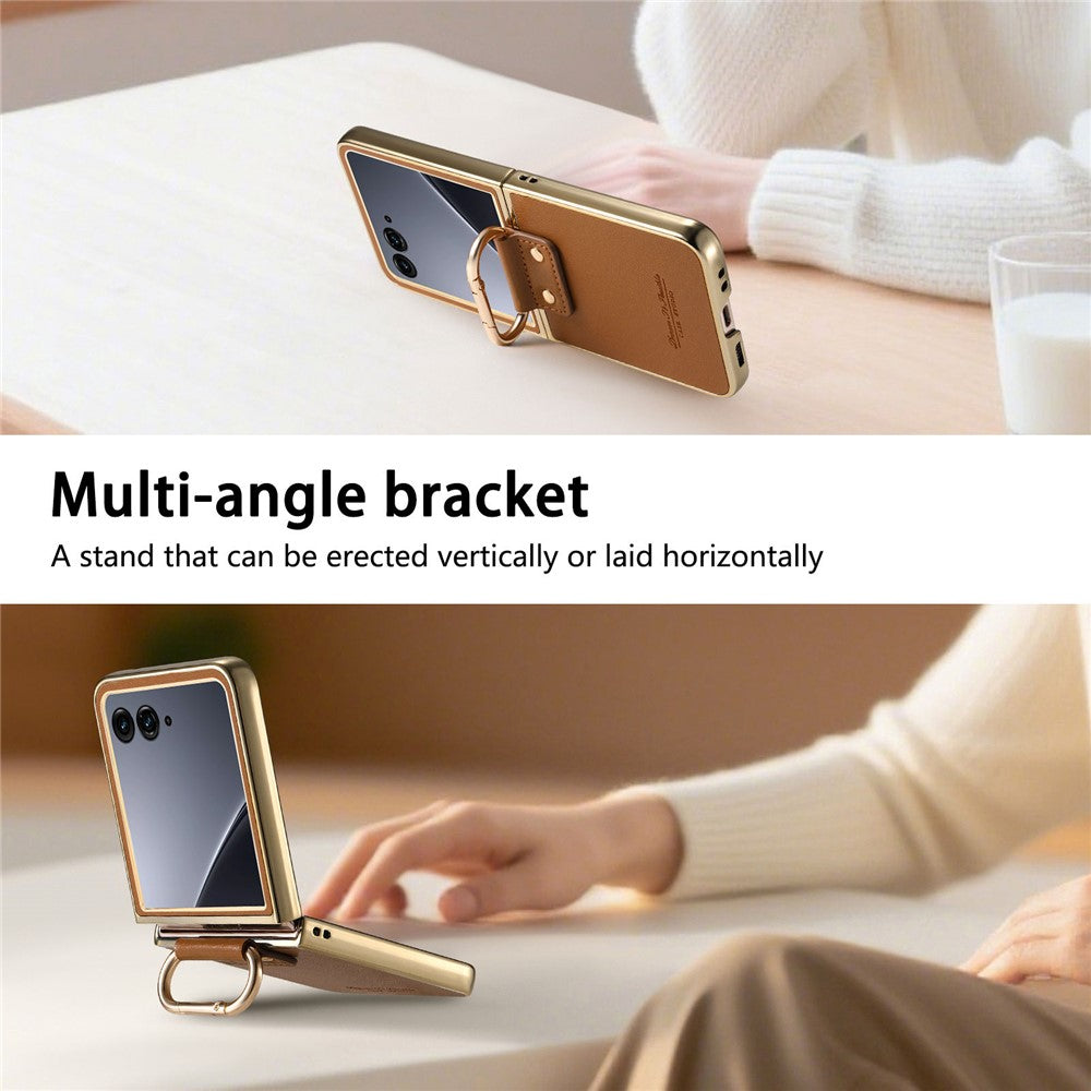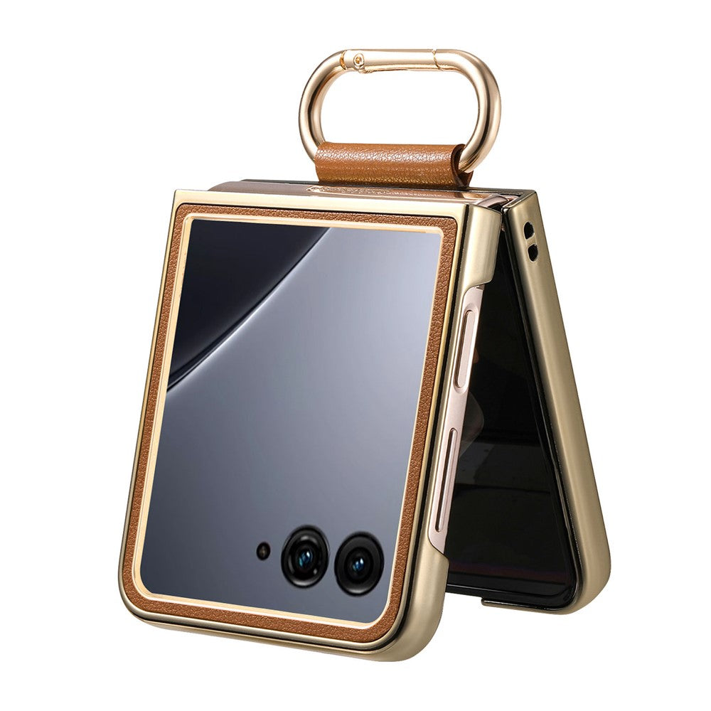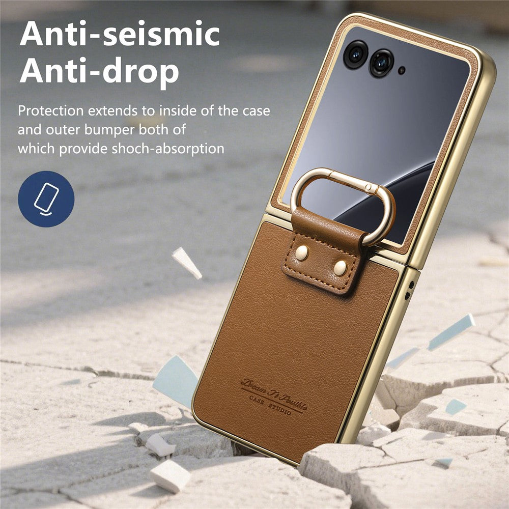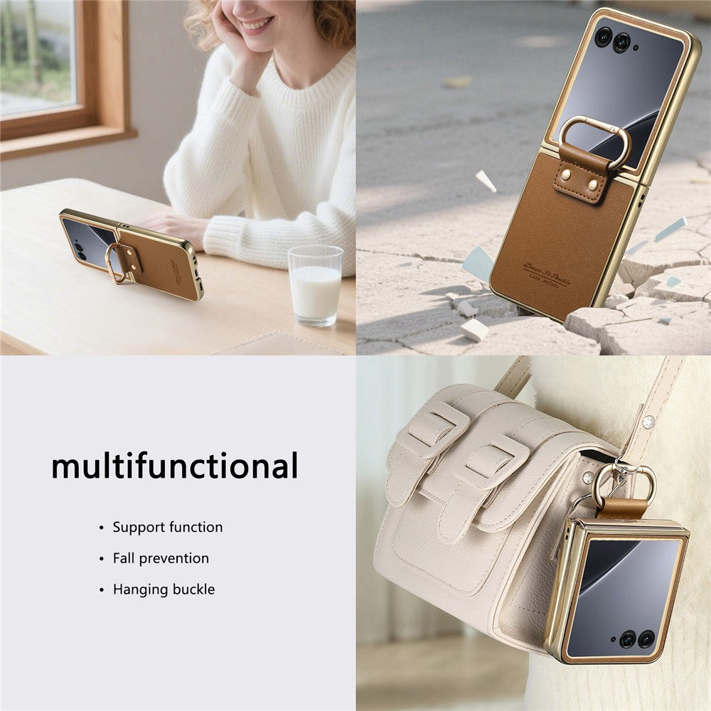 For Motorola Razr 60 Ultra 5G Case Electroplating Leather Coated PC Phone Cover with Spring Ring Buckle Kickstand