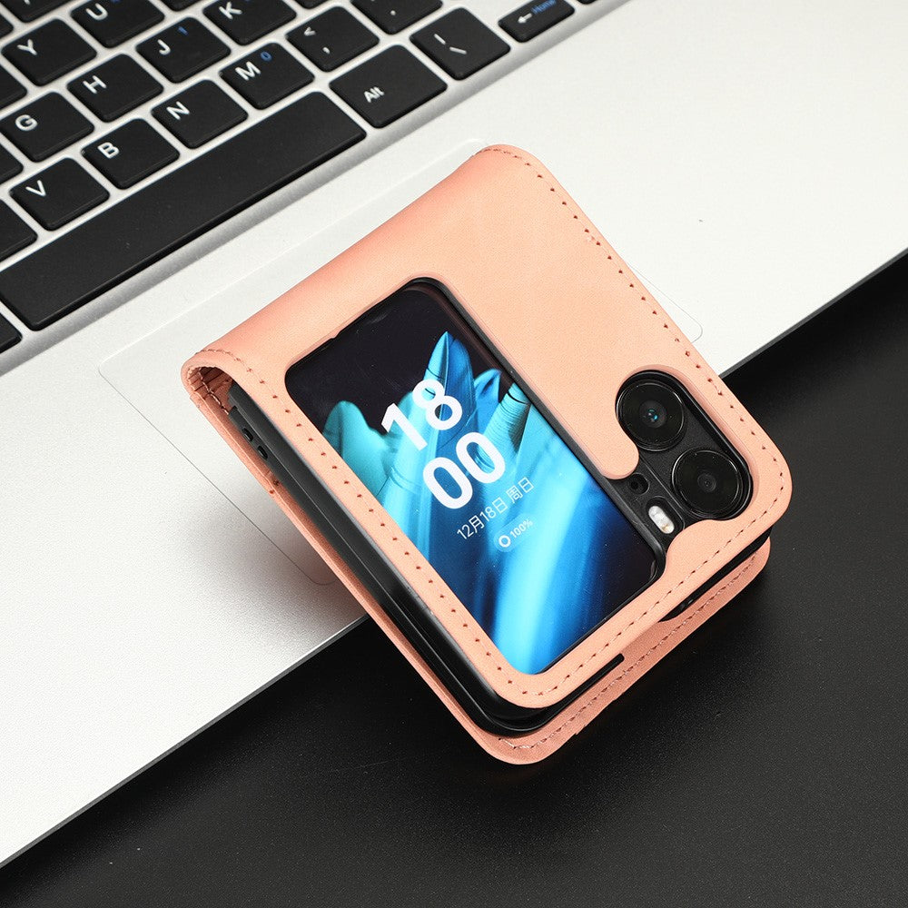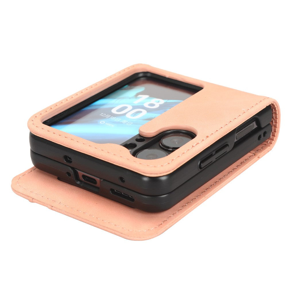 Skin-Touch Phone Case for Oppo Find N2 Flip 5G Separable Design Leather Coated PC Cover with Wallet