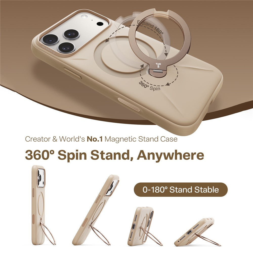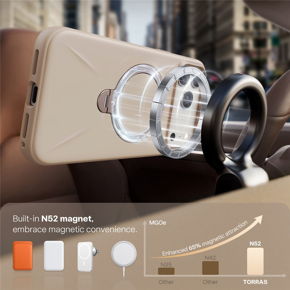 TORRAS Ostand Q Pro Series For iPhone 17 Pro Max Case Magnetic Ring Kickstand Liquid Silicone + PC Phone Cover